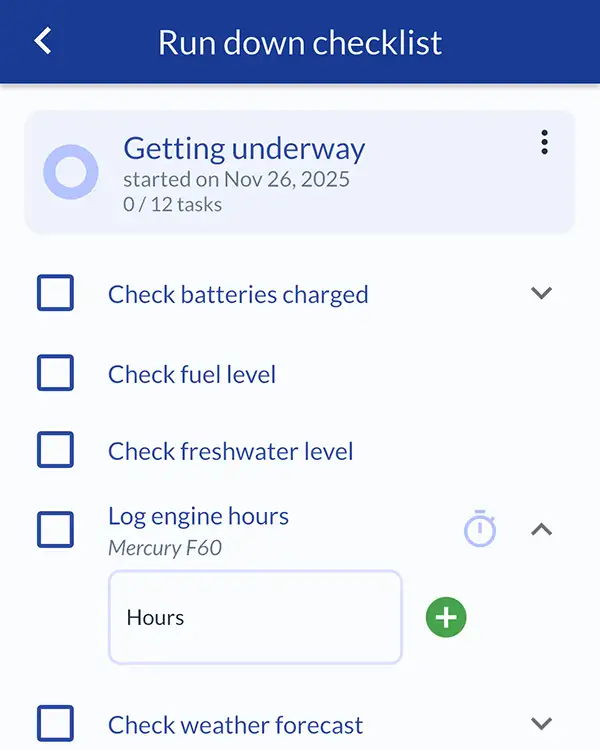 - Create a custom checklist, add tasks specific to your boat or equipment and run down the checklist